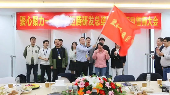 The head of Xi'an R&D and the heads of departments waved the flag of the Euler project together. This bright red flag is both a goal and a promise, a red flag full of mission, signifying the determination of the MTN Xi'an R&D team to achieve their goals.